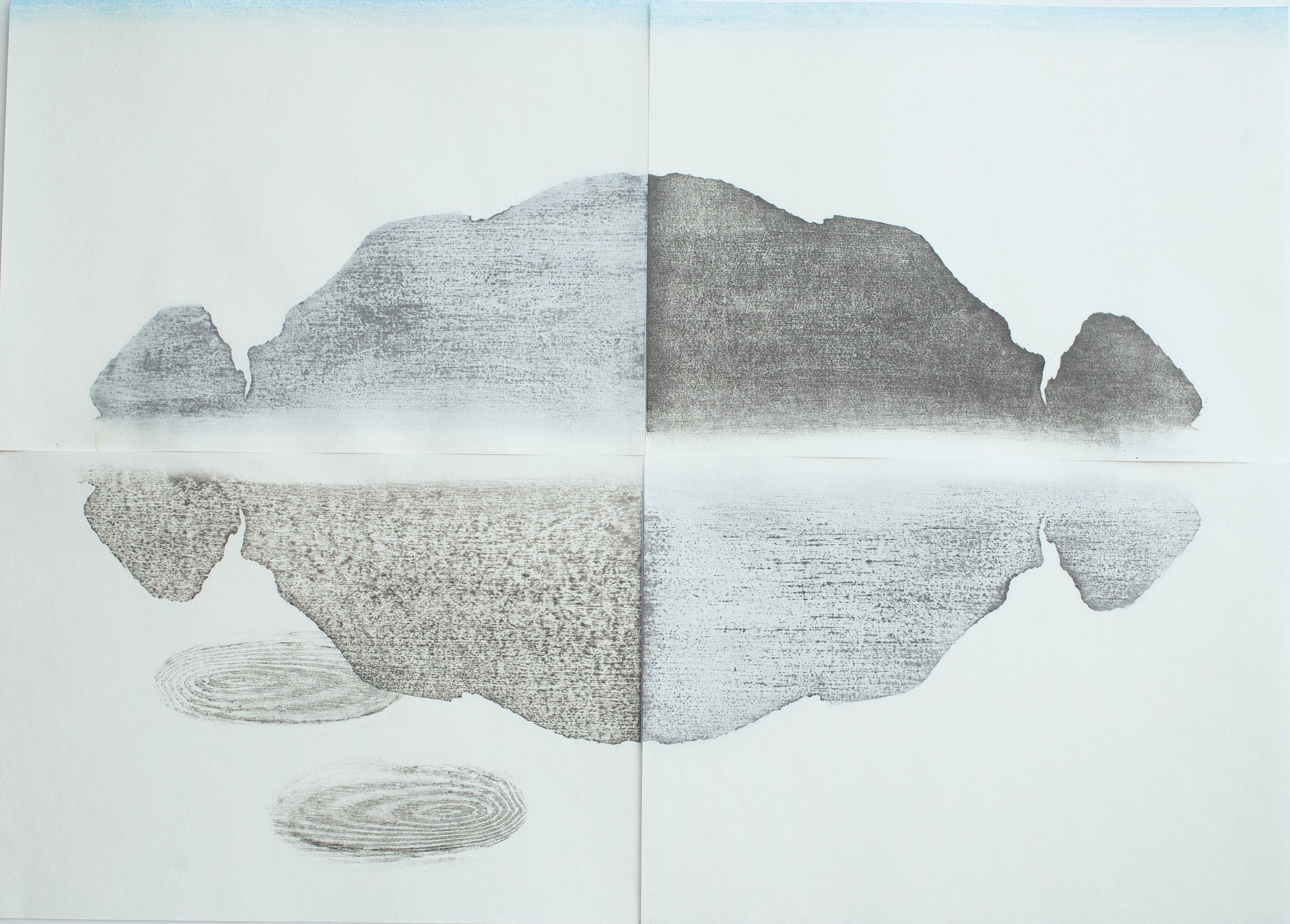 Inspirert av eit japansk eventyr om two froskar (The two frogs). Mokuhanga, origami.